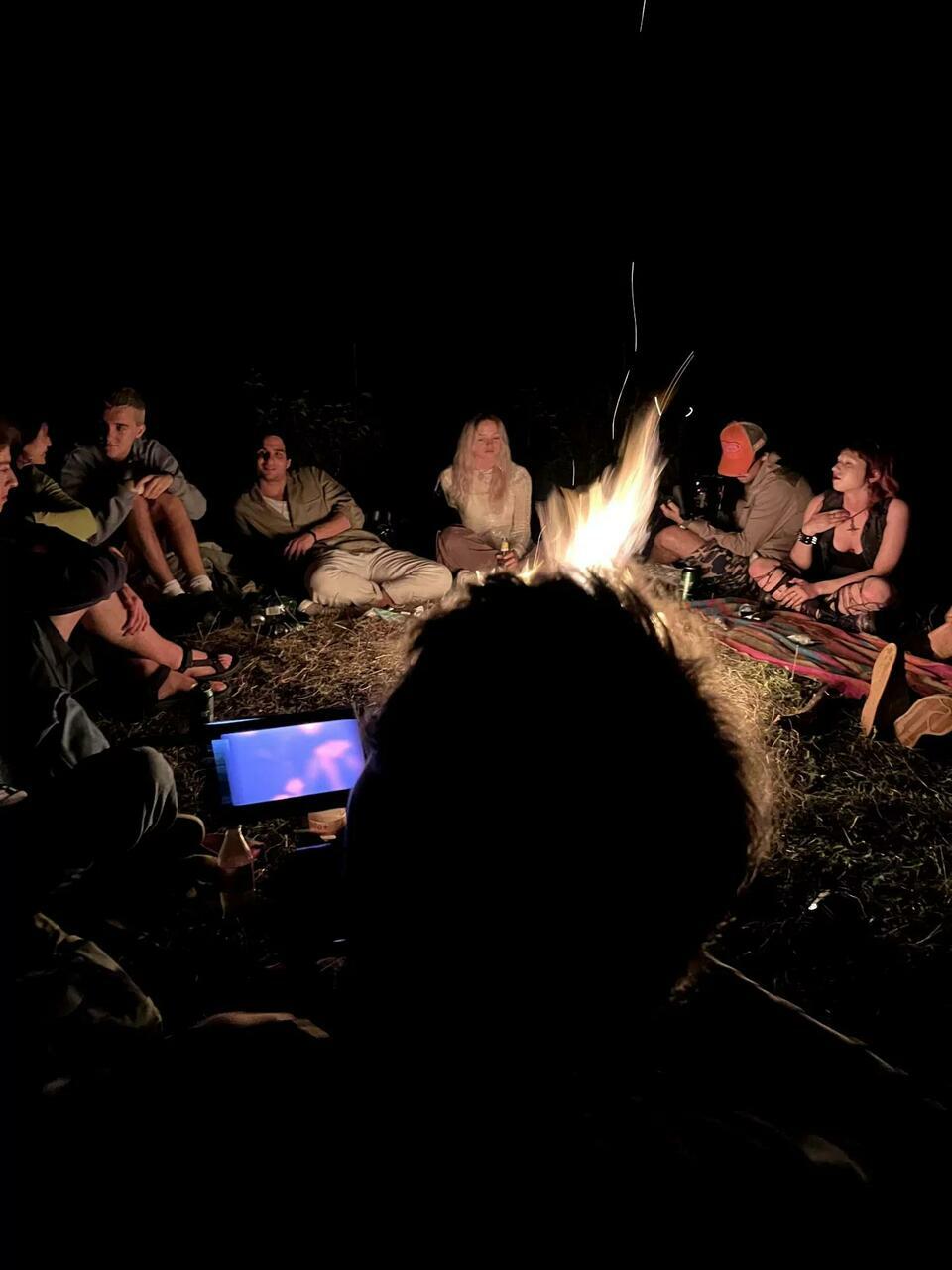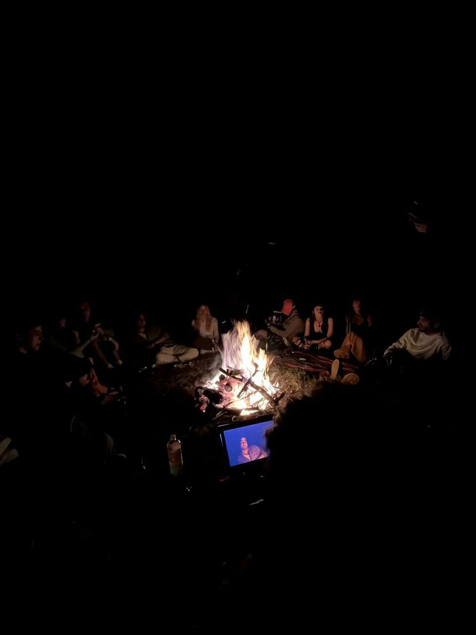 Fiatalok gyűlnek össze és raknak tüzet egy erdei tisztáson, a távolban a fesztivál fényei és hangjai kavarognak. A szereplők napkeltéig beszélgetnek a tűz körül, táncoló lángja, mint egy meditatív felület erősíti a képzeletet, a biztonságérzést és az összetartozást.